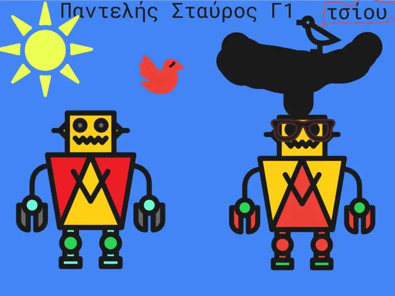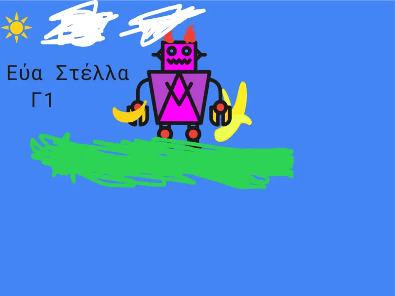 Στο πλαίσιο του προγράμματος, έχει σχεδιαστεί και υλοποιείται ένα σύνολο δράσεων στο μάθημα της Πληροφορικής. Αρχικά δόθηκε η δυνατότητα να δημιουργήσουν τις δικές τους καλλιτεχνικές δημιουργίες αξιοποιώντας το online εργαλείο autodraw. Αφού πρώτα δούλεψαν πάνω σε κάποιο ελεύθερο σχέδιο προκειμένου να εξοικειωθούν με την χρήση του, στη συνέχεια έφτιαξαν ένα έργο με θέμα “Το ρομπότ”. Τα έργα τους μπορείτε να τα δείτε παρακάτω: