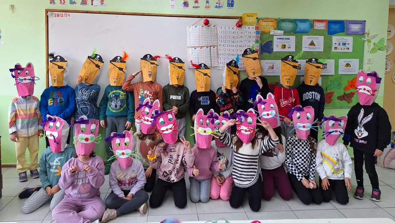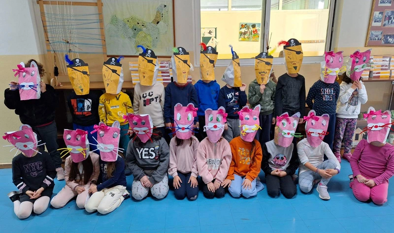 - Β τάξη: πειρατές και γάτες από χαρτοσακούλα, «χαρταετοί στον ουρανό» – συνδυασμός κολάζ και ζωγραφικής.