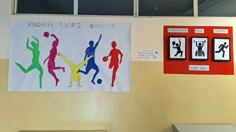 Με αφορμή την 12η Πανελλήνια Ημέρα Σχολικού Αθλητισμού στις 26 Σεπτεμβρίου 2025 ,οι μαθητές και μαθήτριες του Σχολείου μας φιλοτέχνησαν ομαδικά καλλιτεχνικά έργα με θέμα τον αθλητισμό στο μάθημα των Εικαστικών.