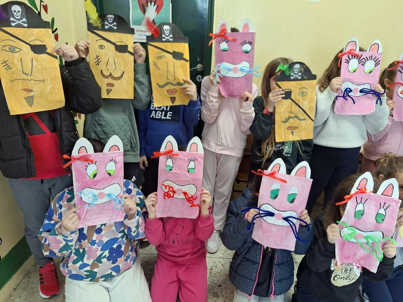Ε΄ τάξη: τρισδιάστατα αποκριάτικα πρόσωπα, μεγάλοι χαρταετοί